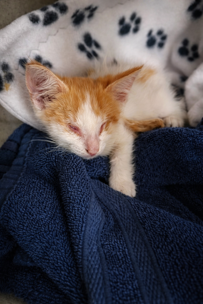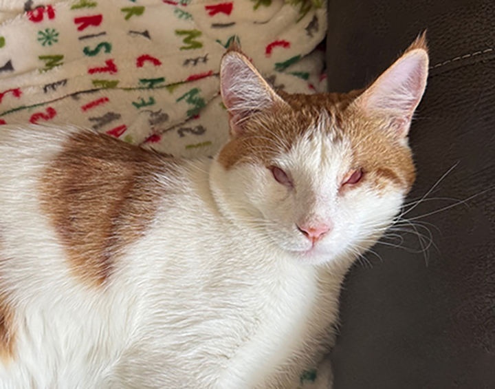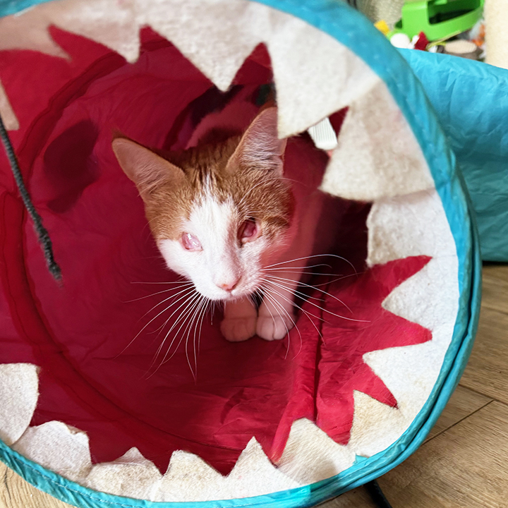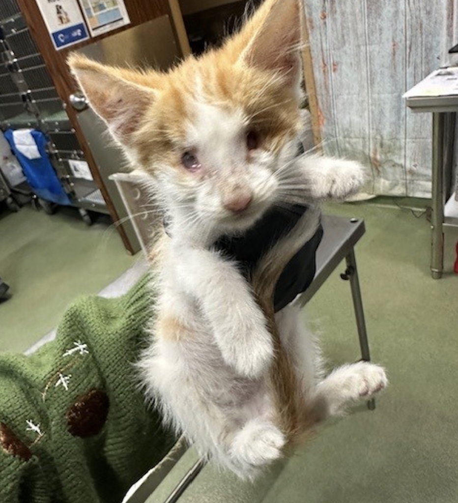 Clinton’s story began with heartbreak, but he has never let it define him. This lively young kitten was surrendered to Devore Animal Shelter in October 2025 by people who chose to keep his siblings but did not want him because he was blind. At just five weeks old, he entered Kitty Devore foster care, where he has been thriving ever since.