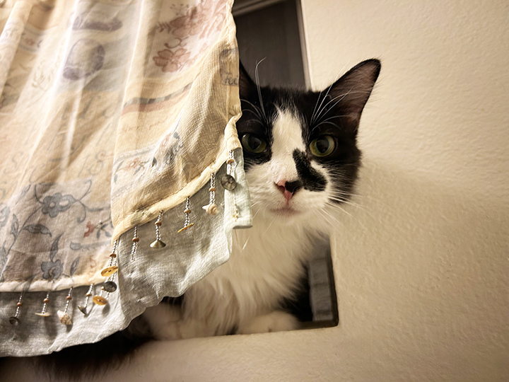 Eclypse! Impossible to ignore, he’s full of awe-inspiring energy, much like the solar and lunar celestial events. He and his siblings, Nebulah and Komet, were born in a warehouse in Anaheim and brought into foster care at just two days old. Their mother, Nova—who also gave birth to KD fosters Wacko and Dot—had eluded the traps for too long. Once rescuers finally caught her, she stayed with her newest babies until they were old enough to be independent. Then, she underwent her spay and vaccinations before returning to her colony.