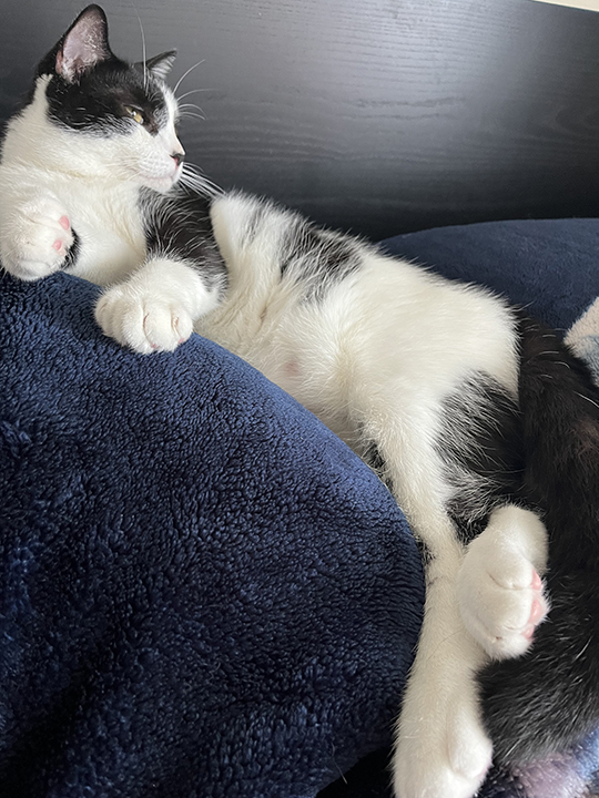 Leonhard’s left eye sometimes gets weepy, and the vet thinks he might breathe loudly from time to time because of his crooked nose, but these things can’t keep a big boss kitty down. He has friends to make, toys to play with, laps to sleep on, and a whole world to explore. Because of his active spirit, Leonhard needs to be in a home with another kitty that can keep him entertained. He would love to be adopted with his foster brother, Harlo, the yin to his yang. Shy kitties may not appreciate Leonhard’s aggressive approach. There are no dogs in his foster home, but he has been introduced to canines and instantly loved them.