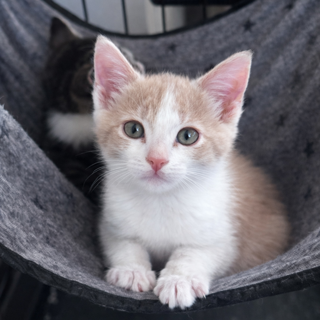 Lime never saw the inside of Devore Animal Shelter. He and his siblings were foundlings, taken in by one of our foster parents in May of 2024 when they were just 7 weeks old. From the start, this orange and white domestic shorthaired boy stood out with his adorably “dirty” nose—a dust-kissed smudge of coloring that gives him a perpetually mischievous look and makes him all the more endearing.